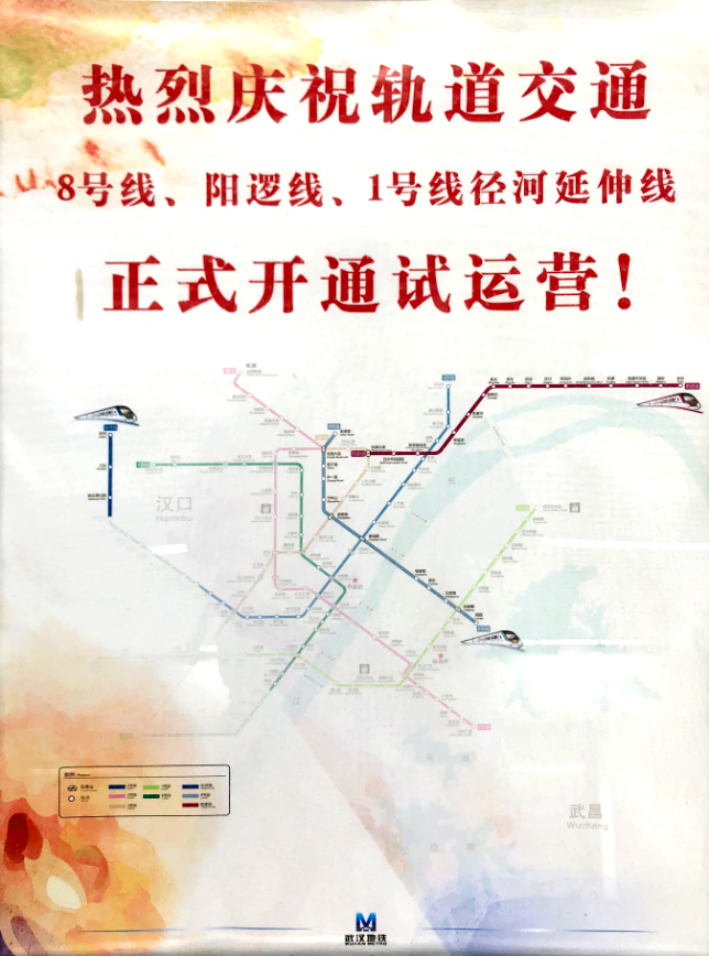 12月26日,武汉地铁8号线、21号线阳逻线、1号线径河延伸线共三条新线于上午8点58分开通试运营。至此,武汉地铁运营里程新增56公里,达到237公里,超越巴黎,接近香港,已逐步迈向世界级地铁城市。
