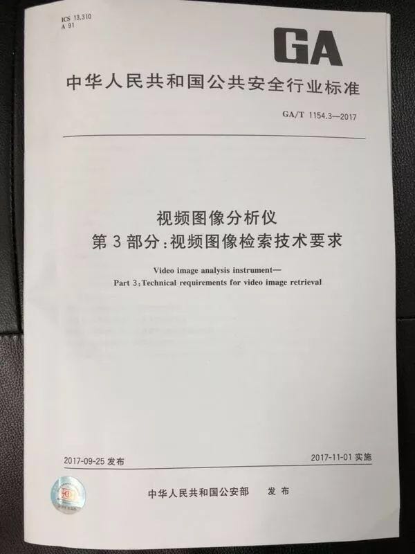 据了解,GA/T 1154《视频图像分析仪》共分6个部分,包含通用技术要求及摘要、检索等系列具体功能的技术要求。其中“视频图像检索技术要求”部分作为GA/T 1154在2017年最新发布的一个部分,规定了有关视频图像检索功能和性能的术语、定义和缩略语、总则、技术要求、试验方法、检验规则等,是GA/T 1154.1中图像检索部分的具体细化,适用于国内具备视频图像检索功能的视频图像分析仪的研发、生产、检验和应用。